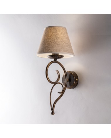 Applique lampada parete ferro battuto elegante paralumi marrone oro vienna