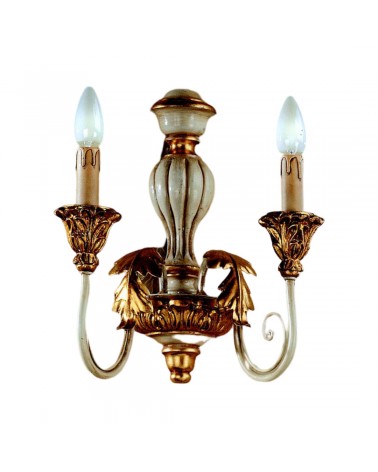 Applique in legno classico avorio oro 2 luci Tuffolo