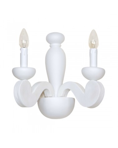 Applique realizzato a mano dai nostri mastri artigiani seguendo le più antiche tradizioni del legno. Struttura in legno intarsiato color bianco opaco. Monta 2 lampadine E14 (non inclusa) . Adatto ad un arredamento classico e raffinato