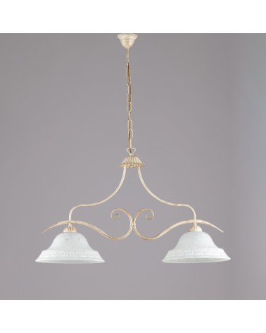 Lampadario bilancia ferro battuto foglie avorio oro atene bl173-2-av