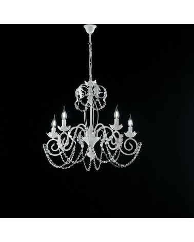 Lampadario a sospensione 5 luci design contemporaneo bianco shabby damasco bl77-5.c.bco