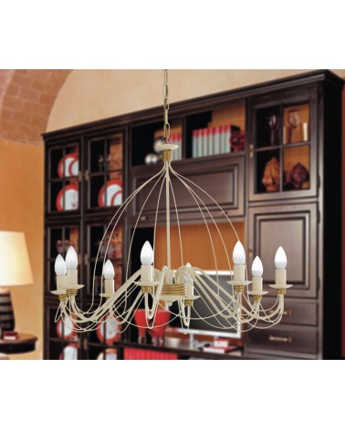 Lampadario sospensione design classico rustico avorio oro bl105-8-av