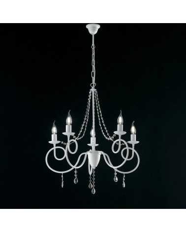 Lampadario a sospensione 5 luci elegante cristalli strass bianco bl148-5-bp