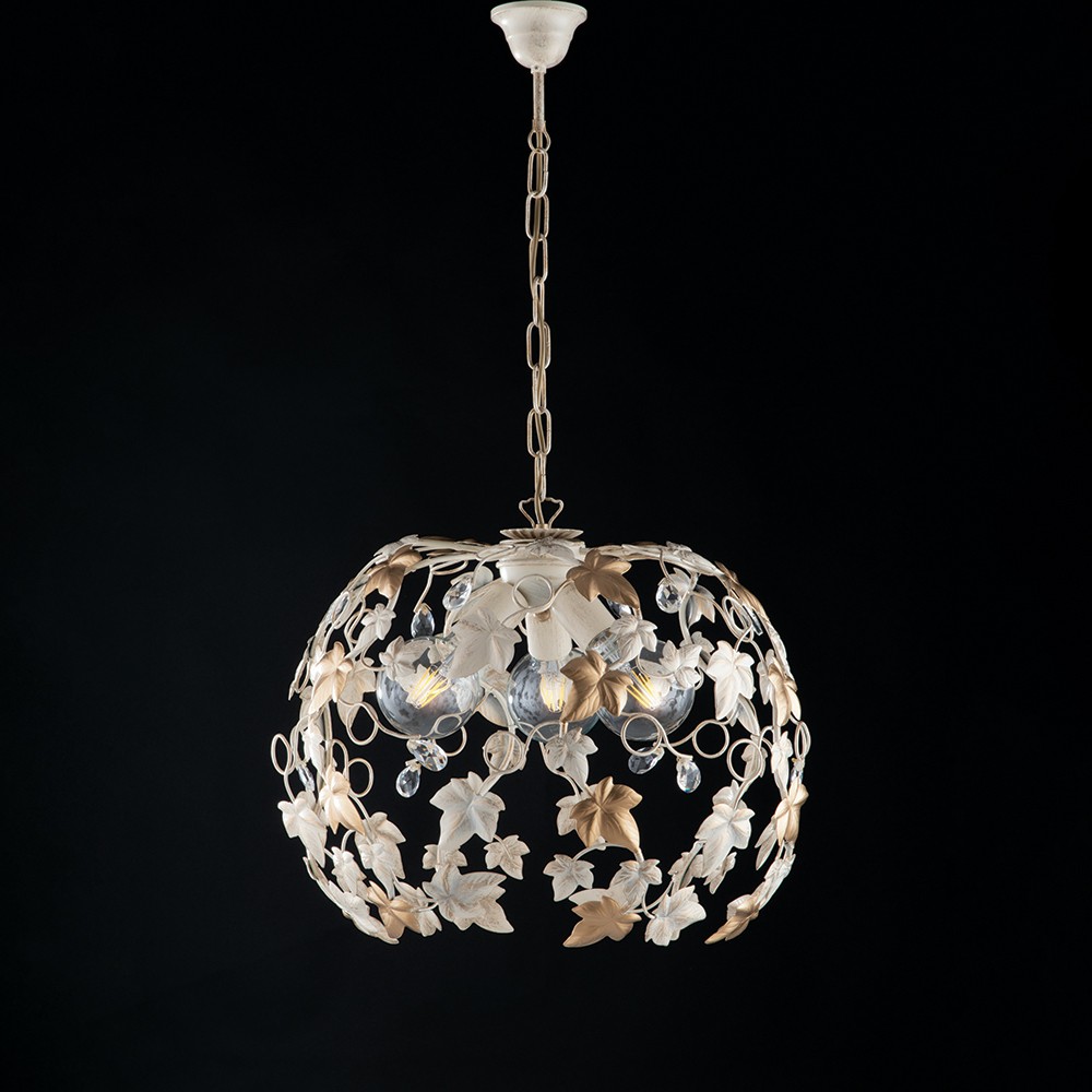 Lampadario sospensione design classico strass avorio oro edera bl50-s3-av
