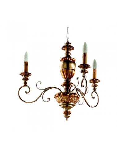 Lampadario realizzato a mano dai nostri mastri artigiani seguendo le più antiche tradizioni del legno. Struttura in legno intarsiato color argento mecca. Monta 3 lampadine E14 (non inclusa) . Adatto ad un arredamento classico e raffinato