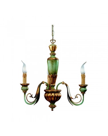 Lampadario in legno classico oro avorio verde arancio 3 luci Oca