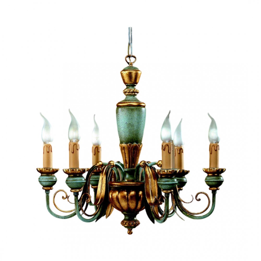 Lampadario in legno classico azzurro oro 6 luci Oca