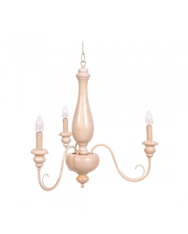 Lampadario realizzato a mano dai nostri mastri artigiani seguendo le più antiche tradizioni del legno. Struttura in legno intarsiato color ocra sbiancato. Monta 3 lampadine E14 (non inclusa) . Adatto ad un arredamento classico e raffinato