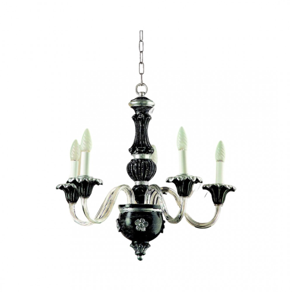 Lampadario in legno classico nero graffiato argento 5 luci Airone
