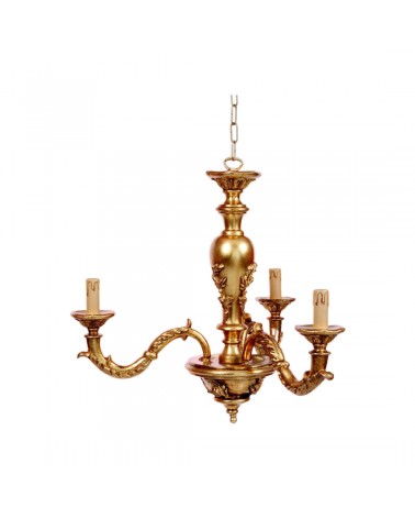 Lampadario in legno classico oro 3 luci Pavoncelle