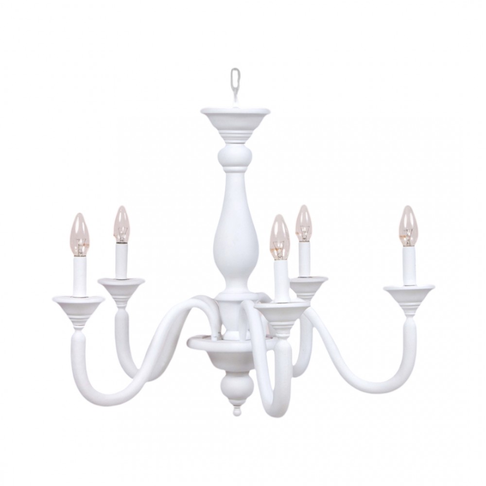 Lampadario in legno classico bianco opaco 5 luci Laridi