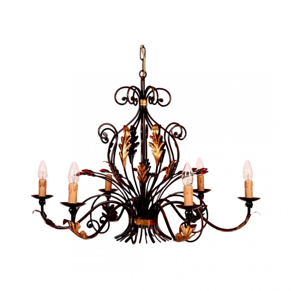 Lampadario classico in ferro noce oro 6 luci Sterna