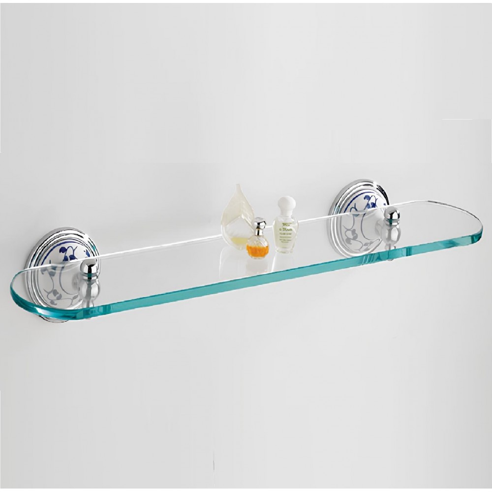 Mensola in vetro, cristallo super trasparente al piombo, per bagno stile classico, realizzato artigianalmente. Particolari in ceramica decorata a mano.