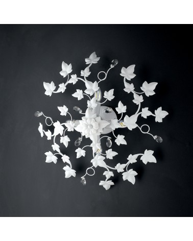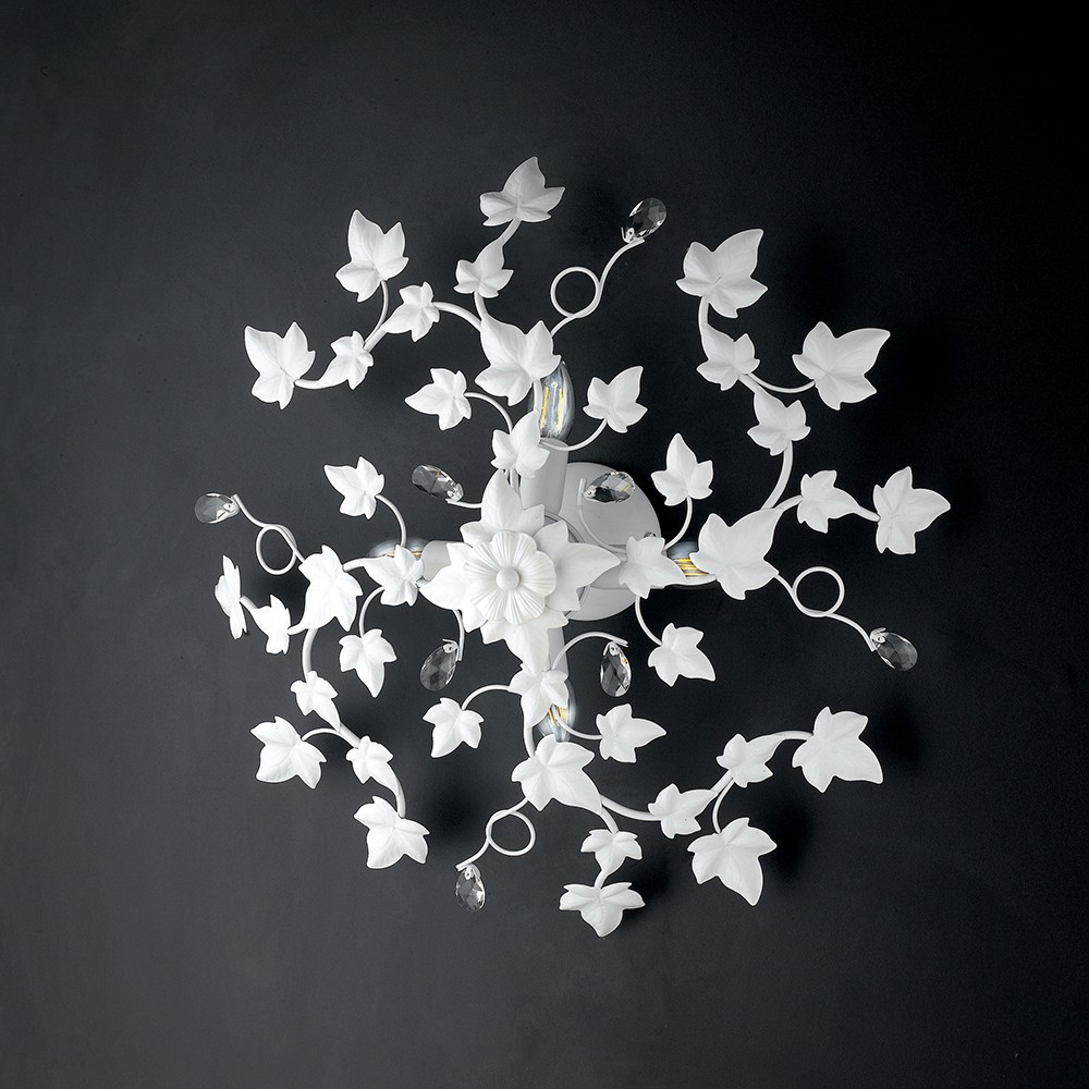 Plafoniera lampada soffitto 4 luci design classico strass bianco shabby edera bl50-pl4-b