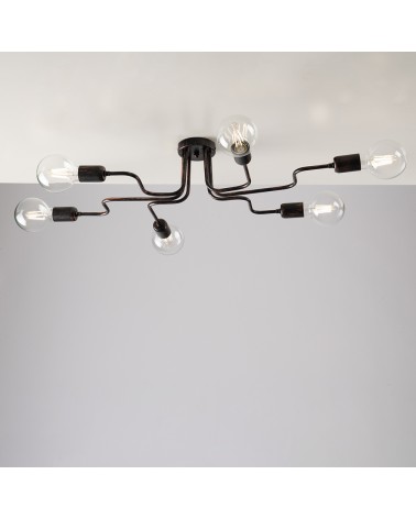 plafoniera lampada soffitto 6 luci design moderno nero rame loft