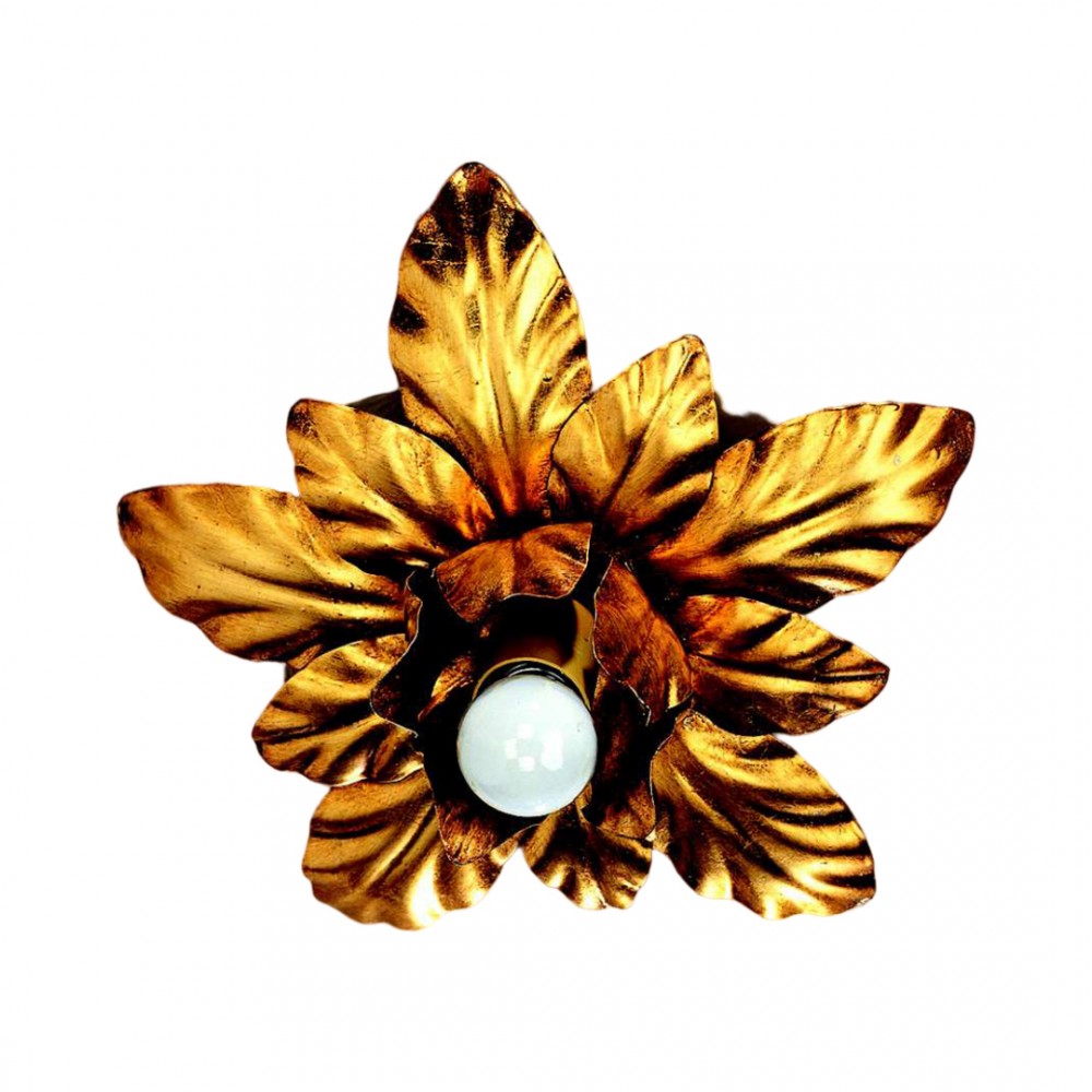 Plafoniera realizzata a mano dai nostri mastri artigiani seguendo le più antiche tradizioni del ferro. Struttura in ferro e decorazione oro. Monta 1 lampadine E27 (non inclusa) . Adatto ad un arredamento classico e raffinato