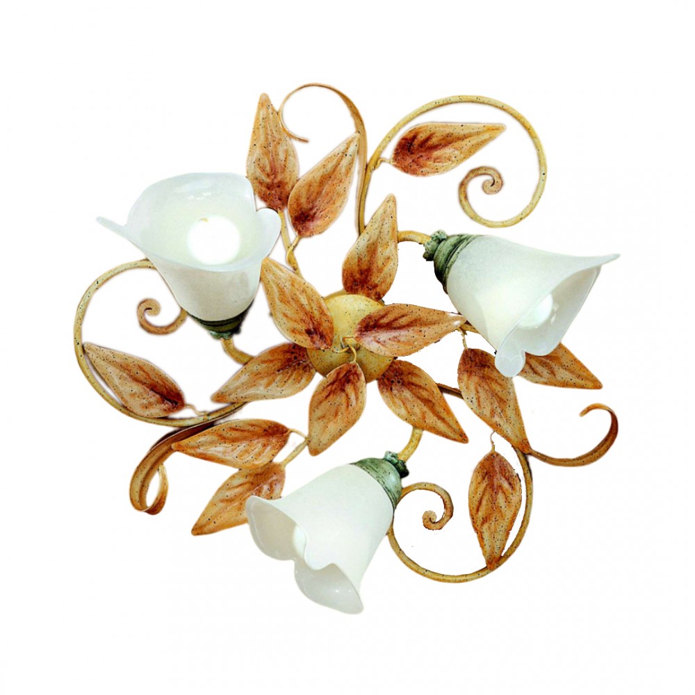 Plafoniera realizzata a mano dai nostri mastri artigiani seguendo le più antiche tradizioni del ferro. Struttura in ferro color giallo crema verde marrone. Monta 3 lampadine E14 (non inclusa) . Adatto ad un arredamento classico e raffinato
