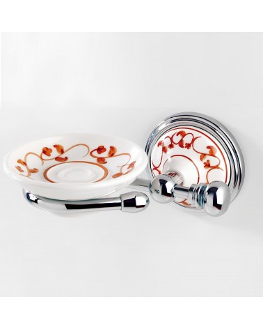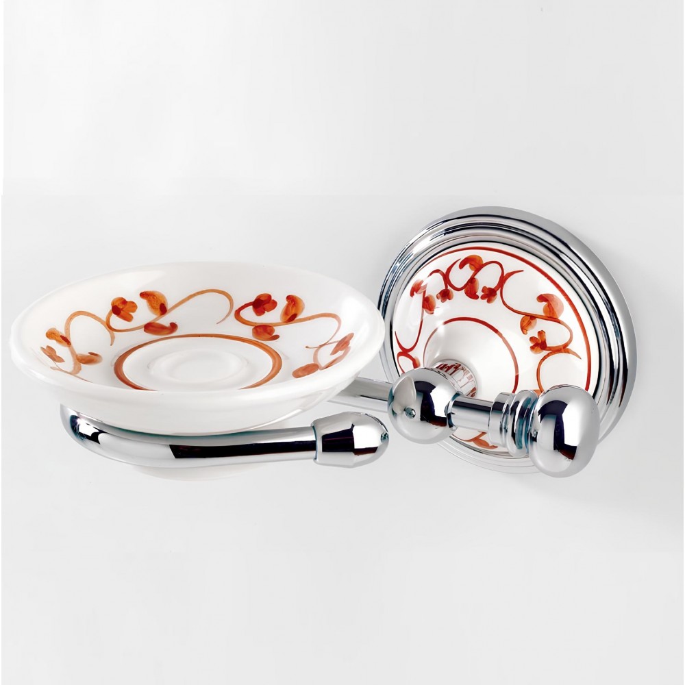 Porta sapone da bagno classico, realizzato artigianalmente. Particolari in ceramica decorata a mano. Cromatura galvanica inossidabile.