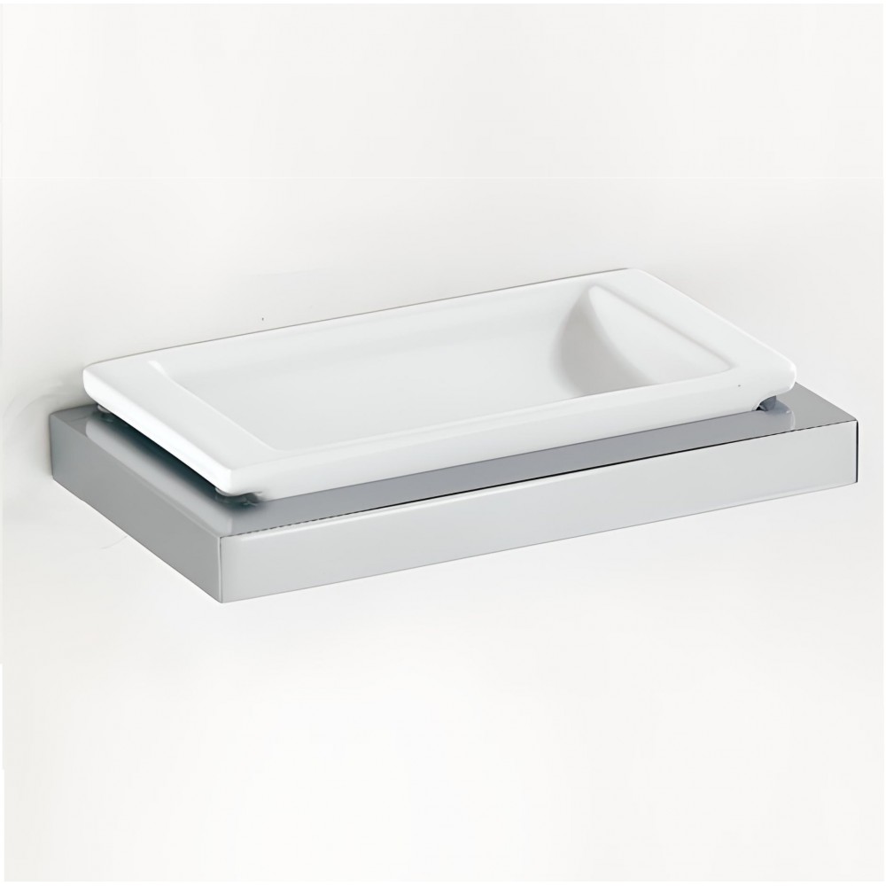 Porta sapone per bagno moderno, realizzato artigianalmente. Cromatura galvanica inossidabile.