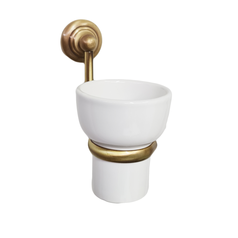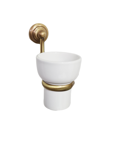 Porta spazzolini ceramica bagno classico elegante ottone bronzato rondò