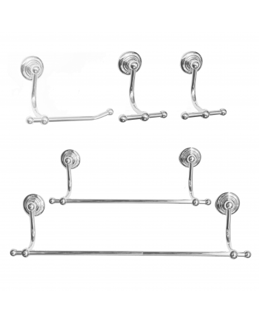 Set da bagno classico, realizzato artigianalmente a mano. Placcatura cromata. Compreso nel set: 1 porta rotolo, 2 gancio accappatoio, 1 porta asciugamani grande, 1 porta asciugamani piccolo
